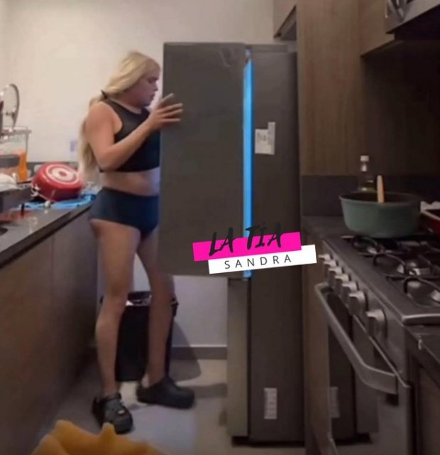 Ahí se pude ver a la creadora de contenido y ex participante de La Casa de los Famosos México mientras está en una cocina y revisa el refrigerador.