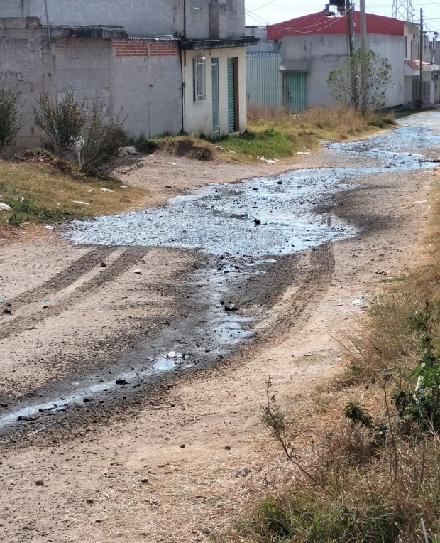 El incidente provocó que el líquido contaminado se esparciera por la vialidad e incluso ingresara a varias viviendas, generando un riesgo sanitario para la población.