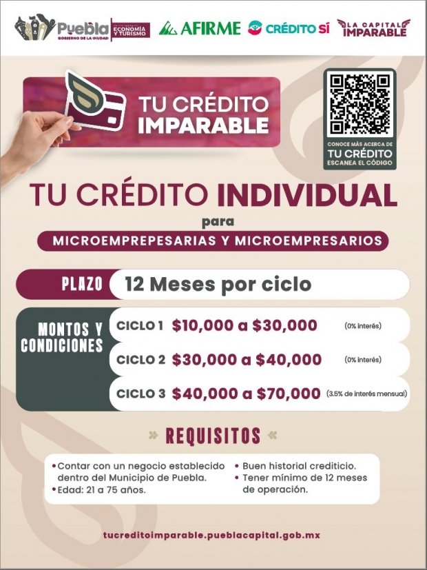 En ambos, la convocatoria para la solicitud de los créditos ya está abierta y permanecerá hasta el 31 de diciembre de 2026 o hasta agotar el recurso, y las y los interesados pueden consultar el sitio https://tucreditoimparable.pueblacapital.gob.mx/.
