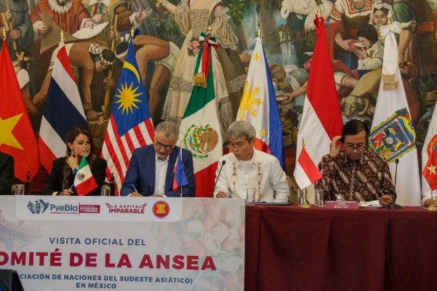 Puebla, Pue., 02 de abril de 2026.- Las ventajas económicas y capacidades productivas de la ciudad de Puebla, fueron presentadas por el secretario General de Gobierno, Franco Rodríguez Álvarez, y la directora Competitividad y Desarrollo Empresarial, Natalia Villar Castilla, a embajadores y ministros de cinco países, miembros de la Asociación de Naciones del Sudeste Asiático (ANSEA).