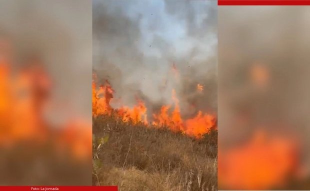 Atizapán de Zaragoza, Mex. Personal de Protección Civil y Bomberos (PCyB) de tres alcaldías y de Protectora de Bosques (Probosque), sofocaron un incendio de pastizal y arbustos secos en el cerro de la Biznaga, donde la tarde de esta sábado densas nubes de humo y fuego, avanzaron por la ladera cerril.