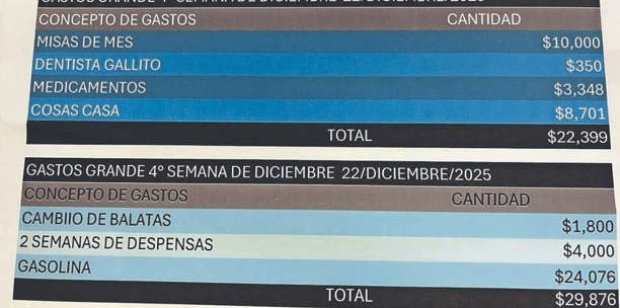 En el documento también se incluyen apoyos médicos, como uno de 60 mil pesos para “operación muchacho Mario”, con fecha del 22 de diciembre de 2025, así como para esposas de los integrantes del grupo criminal en reestructura, luego del abatimiento de su líder en un operativo del Ejército y de la Guardia Nacional en el municipio de Tapalpa.