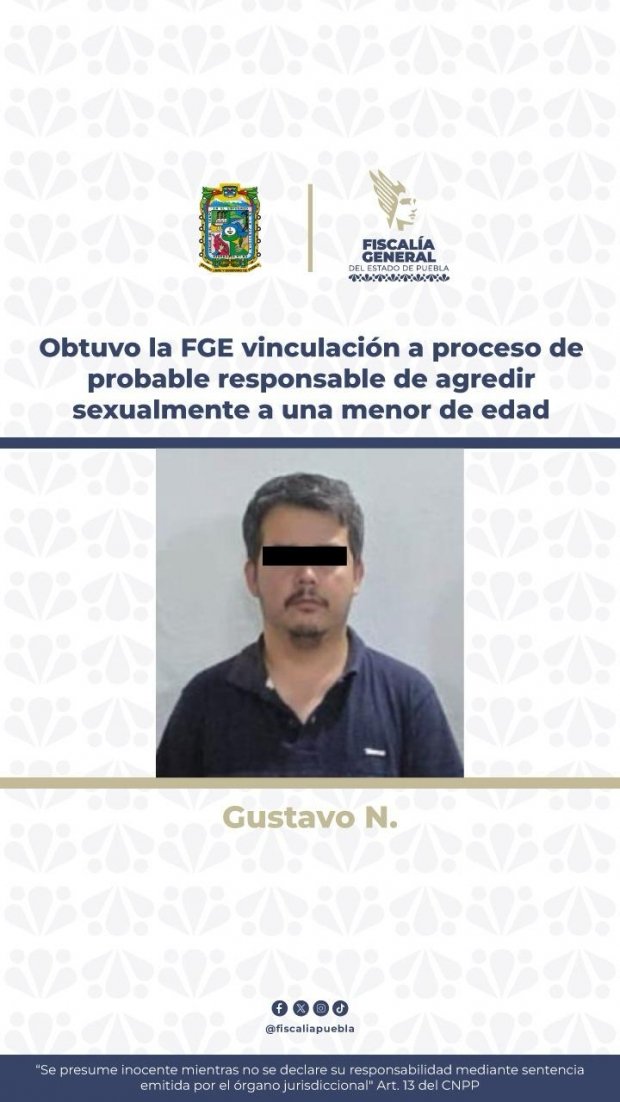 La Fiscalía General del Estado logró la vinculación a proceso de Gustavo N., por su probable responsabilidad en los delitos de violación equiparada agravada y violación agravada, en contra de una menor de edad, hija de su ex pareja sentimental.