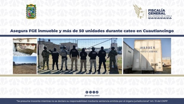 La Fiscalía General del Estado (FGE) ejecutó una orden de cateo en un inmueble ubicado en la calle Los Pinos, en la junta auxiliar de Trinidad Sanctorum, municipio de Cuautlancingo, Puebla.