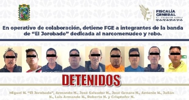 En un operativo de colaboración con Policía Municipal y Estatal, la Fiscalía General del Estado de Puebla (FGE), detuvo el 25 de marzo a nueve personas identificadas como integrantes de la banda de “El Jorobado”, dedicada al narcomenudeo, robo a transporte público y robo a transeúnte en el municipio de Puebla y zona metropolitana.