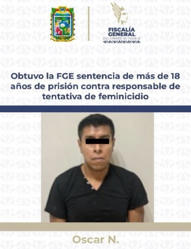 Con base en el caudal probatorio aportado por la Fiscalía General del Estado, se acreditó que Oscar N., es penalmente responsable del delito de feminicidio en grado de tentativa, ocurrido en Huehuetla, Puebla, por lo que obtuvo una sentencia en su contra de 18 años, 4 meses de prisión.
