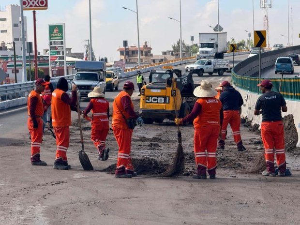 Las brigadas del OOSL realizaron trabajos de barrido, retiro de residuos y limpieza de la vialidad afectada, con el objetivo de restablecer la circulación y garantizar condiciones óptimas para automovilistas.