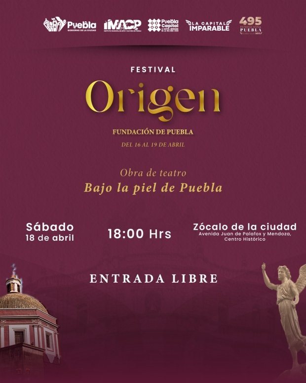 La celebración inicia este sábado 18 de abril. A las 13:00 horas, el Zócalo será escenario del concierto “Puebla, Armonía Viva” con la Orquesta Sinfónica de la Facultad de Artes de la BUAP, un homenaje a compositoras y compositores poblanos. A las 16:00 horas se presentará la obra de teatro “De la fundación a la batalla”, la cual abordará el papel de los barrios fundacionales en la construcción de la ciudad a lo largo del tiempo. Posteriormente, a las 18:00 horas, el montaje multidisciplinario “Bajo la Piel de Puebla” ofrecerá un recorrido por la memoria histórica de estos mismos barrios que dieron origen a la ciudad.