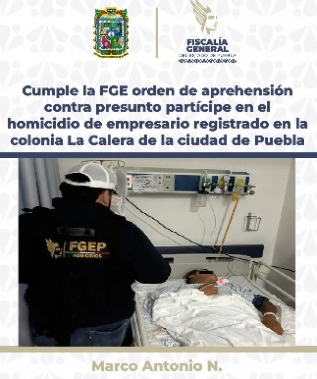 La Fiscalía General del Estado de Puebla informa que como resultado de actos de investigación se logró identificar y detener a Marco Antonio N., por su probable participación en el homicidio de un empresario ocurrido el pasado 1 de septiembre en la colonia Bosques de La Calera de la ciudad de Puebla.
