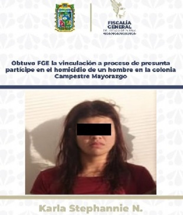 La Fiscalía General del Estado informa que, a partir del análisis integral de indicios y dictámenes periciales incorporados a la carpeta de investigación, se obtuvo la vinculación a proceso y la medida cautelar de prisión preventiva oficiosa en contra de Karla Stephannie N., señalada como probable responsable del delito de homicidio calificado.