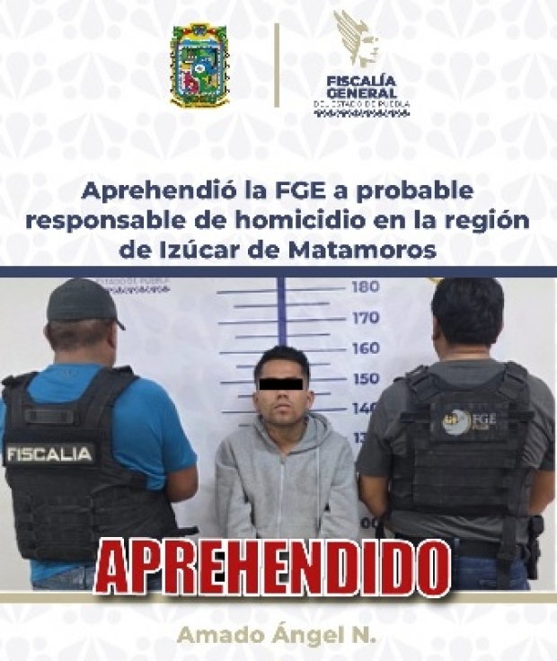 La Fiscalía General del Estado capturó a Amado Ángel N., quien contaba con una orden de aprehensión por su probable responsabilidad en el delito de homicidio calificado en contra de un hombre, ocurrido en la región de Izúcar de Matamoros, Puebla.